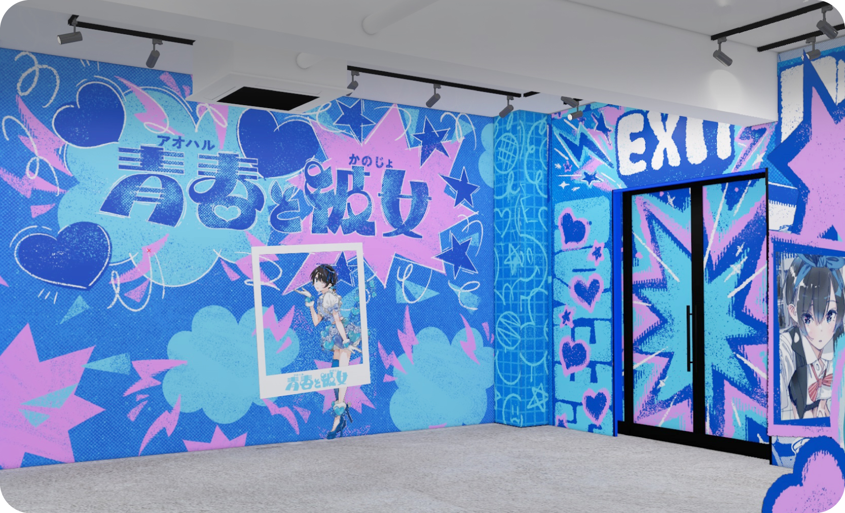今回の描き下ろし単行本での瑠夏と和也のデートを再現した、体験型の展示となっております。二人がデートに行ったゲームセンターがベースの空間となっており、クレーンゲームやプリクラ等のコンテンツをご用意しております。基本的に予約でのご案内を想定しており、支援いただいた方以外もご入場いただけます。満足度2以上のコースをご支援いただいた方は先行来場予約をいただけますので、ぜひご活用ください。